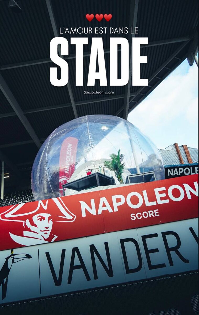 ✍️ На футбольном матче в Бельгии болельщикам устроили свидание и романтический ужин в куполе, который установили прямо на трибунах
