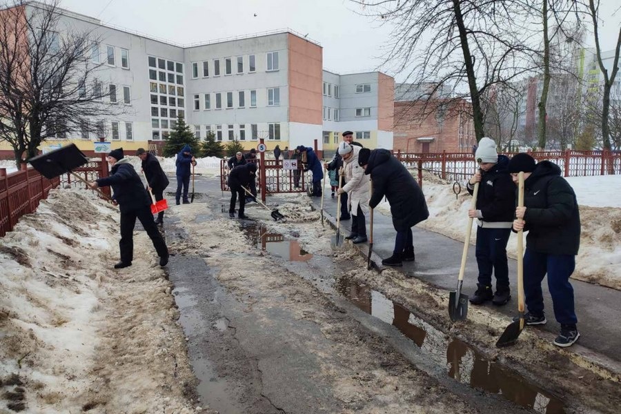 В Гомеле в выходной педагоги, родители и учащиеся СШ № 57 убрали снег