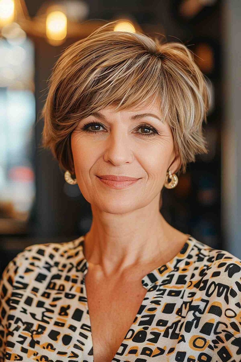 Весна — это время обновления, когда хочется скинуть лишний груз и добавить образу легкости. В 2026 году мода для зрелых женщин фокусируется на естественности, «подвижных» формах и визуальном объеме. Вот главные тренды на короткую и среднюю длину! 🌸 Пикси остается фаворитом, но в 2026 году оно становится менее строгим. Мастера делают ставку на многослойность и «рваные» кончики. Это идеальный баланс между элегантностью и дерзостью. Стрижка заканчивается на линии челюсти или чуть выше, приподнимая визуально овал лица. Для самых смелых дам — короткие виски и объемная макушка. Это выглядит современно и избавляет от необходимости долго возиться с феном. В 2026 году в моде «расслабленное» каре. Вместо четких срезов — легкая градуировка. Слоистая структура позволяет прядям мягко спадать на плечи. Это стратегически верный выбор, если хочется скрыть морщинки в зоне шеи. Плотный срез волос придает им здоровый и густой вид. Главное условие — челка не должна быть слишком густой, лучше