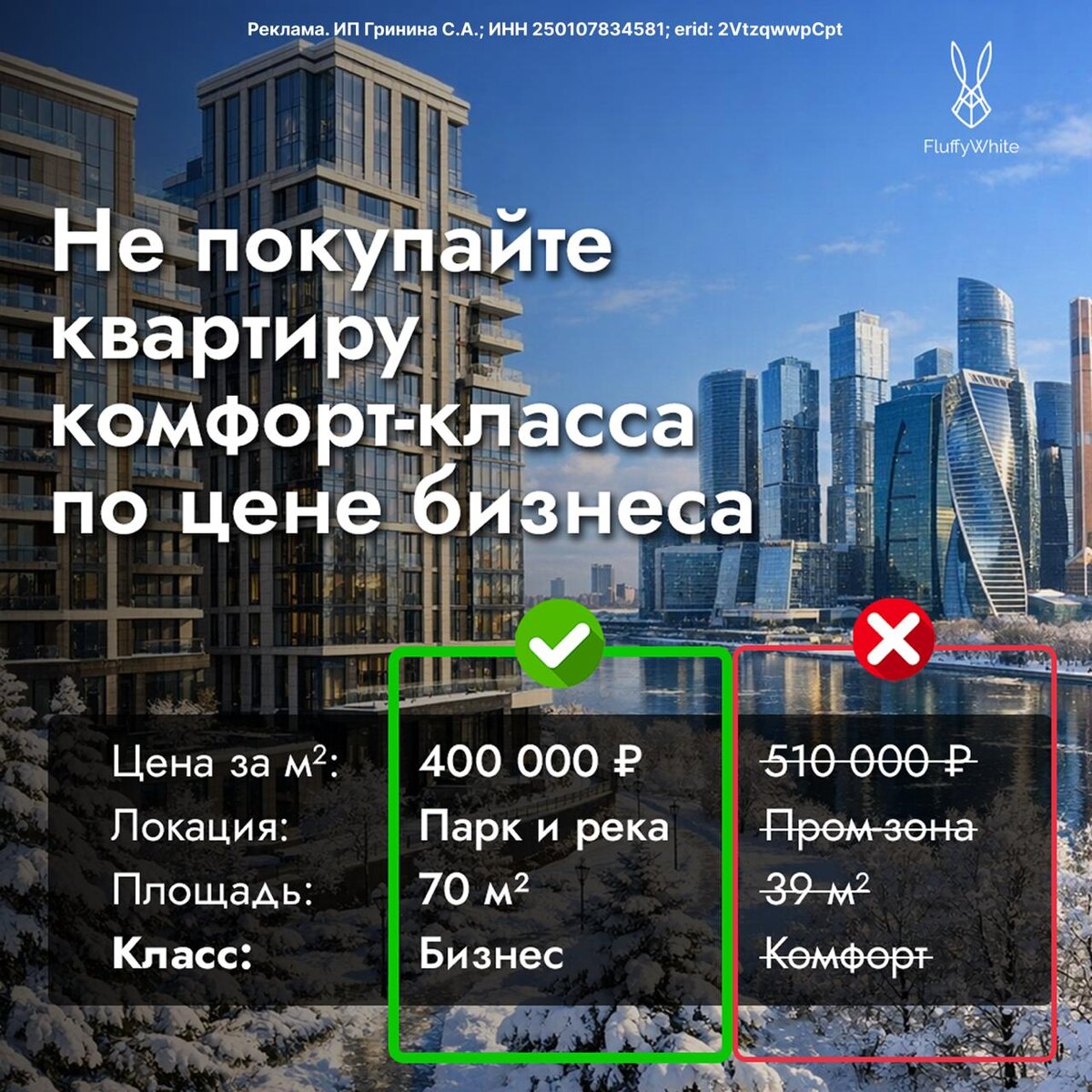 Специально, чтобы вы не приобрели откровенный неликивид и не переплачивали за него еще сверху 3 квартиры, аналитики из команды FluffyWhite собрали в одном каталоге «ТОП-10 самых желанных ЖК февраля». В нем вы найдете только лучшие, качественные и востребованные объекты столичного рынка недвижимости. Команда FluffyWhite специализируется на объектах бизнес и премиум-класса и имеют специальные условия у застройщиков, которые невозможно получить, обратившись напрямую в офис продаж Пример условий одного из объектов: ➖ Беспроцентная рассрочка с платежом от 50.000₽/мес ➖ Ставка по ипотеке от 1% ➖ Стоимость квадрата от 400.000₽ А еще это качественный (не условный) бизнес-класс, рядом с которым находится парк и река Переходите в бота команды FluffyWhite и забирайте каталог, чтобы лучшая недвижимость Москвы всегда была под рукой - https://t.meFluffyWhitebot