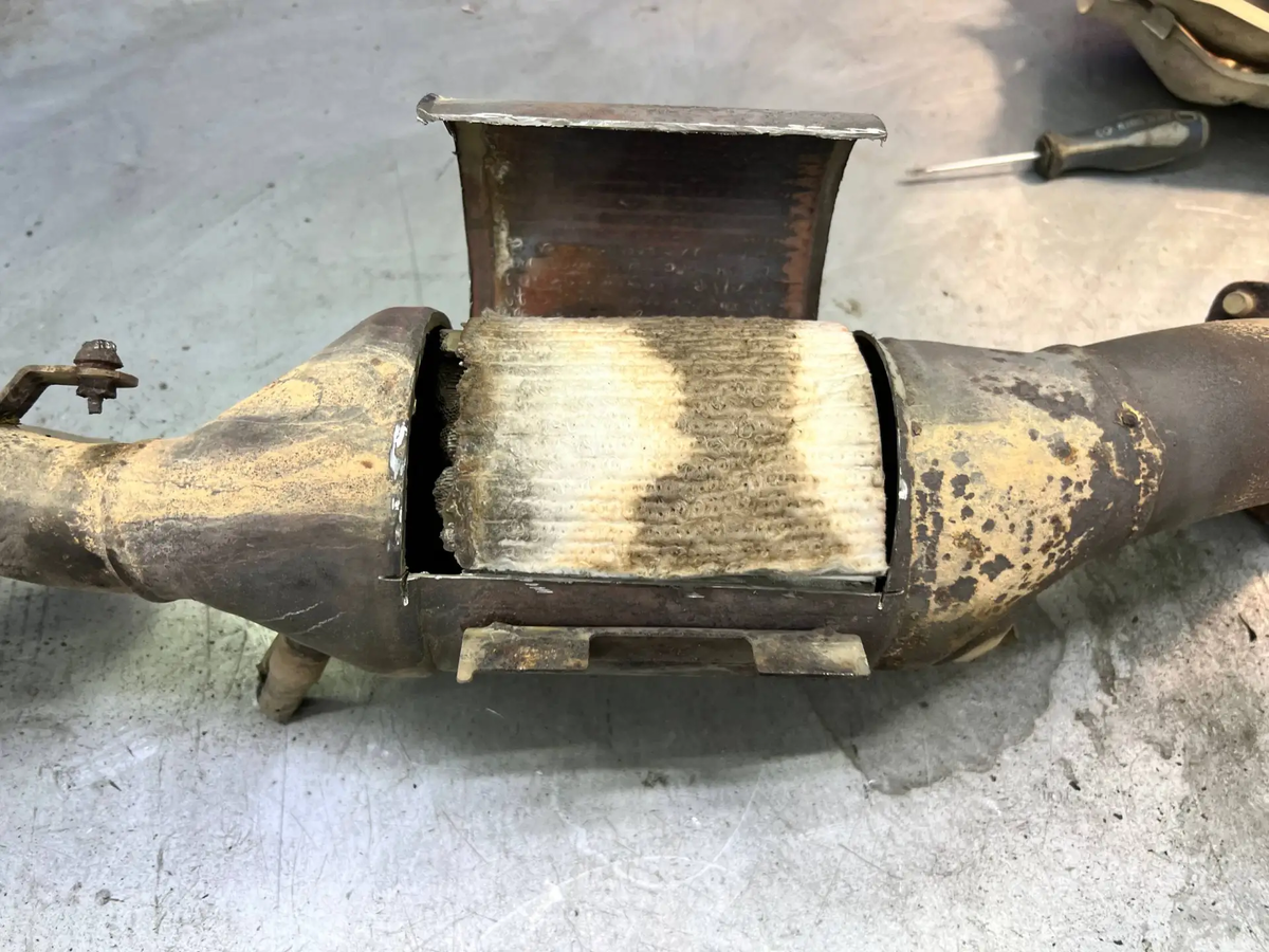 Загорелся и периодически мигал «Чек» Land Cruiser 200 с мотором V8 1UR. Владелец заметил, что на холостых двигатель работает с вибрацией, и перемещаться на авто невозможно. Подключили сканер, ошибки указывали на множественные пропуски зажигания в седьмом цилиндре. Проверили свечи, катушки, компрессию. Выявили отмытую свечу 7-цл. Чтобы убедиться окончательно, сделали эндоскопию цилиндра. Увидели отмытую камеру сгорания. Через микротрещину антифриз попадал в камеру сгорания и выхлопную систему. Из-за попадания охлаждающей жидкости в выхлоп разрушился катализатор. Его соты частично оплавились и заблокировали выпуск. Сняли двигатель. Заменили прокладки головок блока, проверили плоскость ГБЦ и отшлифовали ее. Катализаторы заменили на новые, соответствующие стандарту Евро-4. Вварили штатно, без обманок и программного отключения. Собрали мотор, проверили герметичность, обнулили ошибки. Чек» не горит, двигатель работает ровно, тяга вернулась 💪 ❗Беспокоит схожая проблема? Проведём бесплатную к