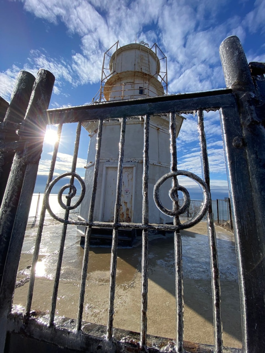 Февраль на мысе Меганом превратил берег в ледяную сказку: земля в инее, хрустальные отблески, морозные картины на стёклах😍