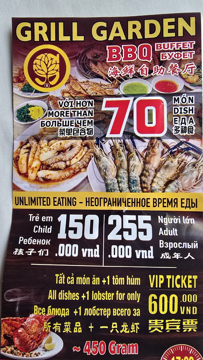 Я расскажу о нашем посещении одного из самых популярных ресторанов BBQ в Нячанге - Grill Garden.