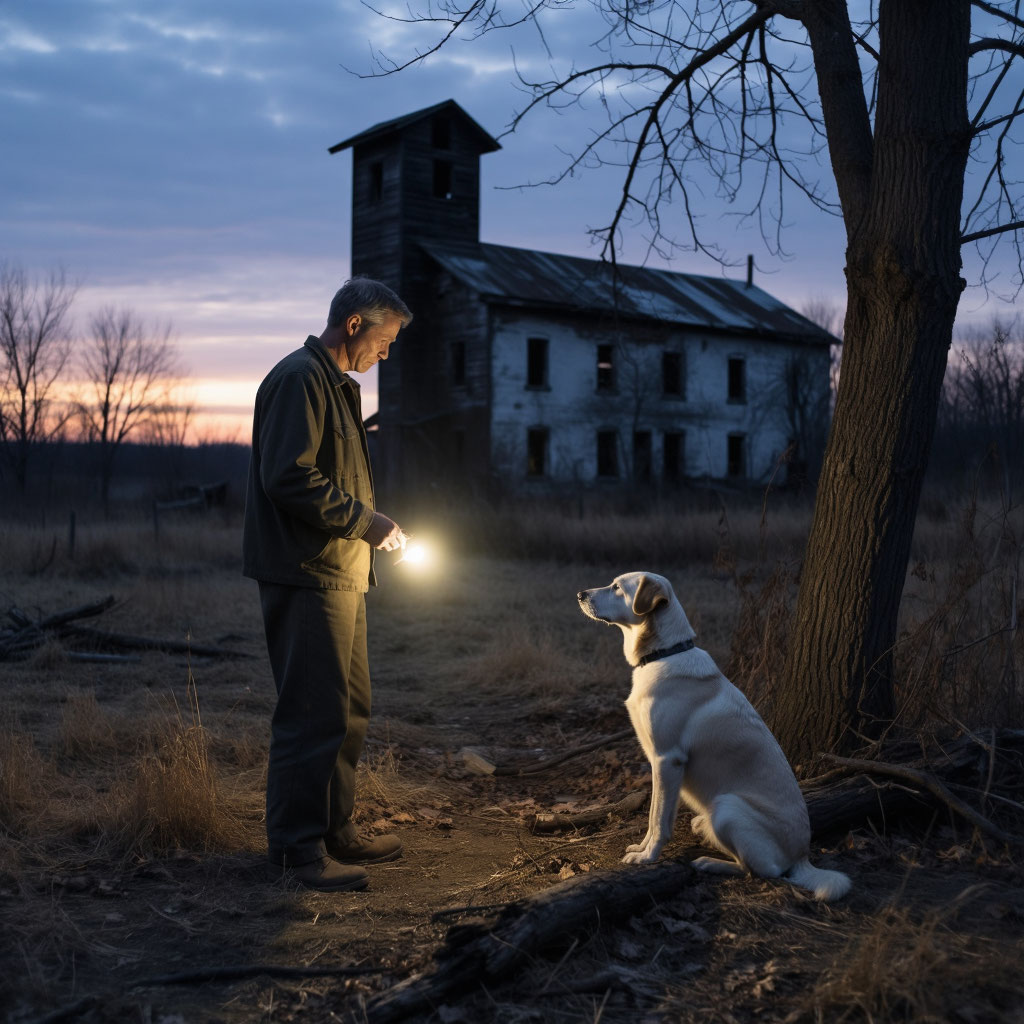 У Томаса перехватило дыхание. Он оглянулся — пёс стоял на пороге, силуэт на фоне сумерек. Не раздумывая, Томас схватил чемодан и поспешил наружу. Слепая собака побрела следом, как будто так и было задумано. Всю дорогу до трейлера Томас то и дело оглядывался — ему казалось, что пёс смотрит на него, несмотря на слепоту.