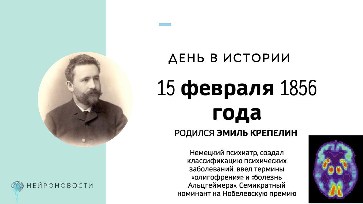 Эмиль Крепелин (1856-1926) создал одну из первых полных классификаций психических заболеваний, занимался «врожденным слабоумием», предложил учение о dementia praecox (то, что позже трансформируется в сильно измененном и расширенном виде в шизофрению), оставил нам термины «олигофрения» и «болезнь Альцгеймера» и еще много чего оставил в истории психиатрии и неврологии. Как результат - семь номинаций на Нобелевскую премию! #деньвисториимозга