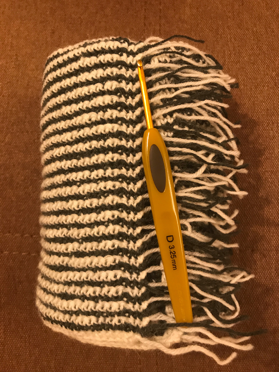 Предыдущая попытка начать этот процесс закончилась неудачно, но зато я определилась с тем, что вязать этот плед буду тунисским крючком.