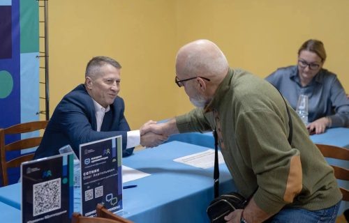 Глава Долгопрудного Олег Сотник принимает поздравления с юбилеем