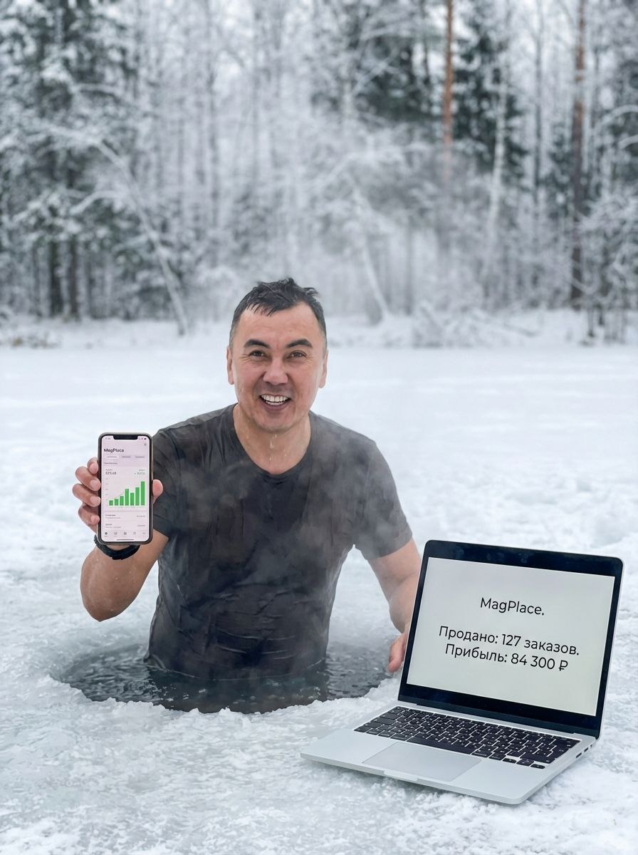 ? Я — в проруби. Контрастный душ, закаливание, ледяная вода — это не про «подвиги». Это про энергию и ясность головы. Когда тело бодрое — решения принимаются быстрее, стресса меньше, а дни становятся длиннее. Но чтобы так жить, нужно одно условие: Утром у вас не должно дёргаться всё, что можно. А теперь честно: можете ли вы позволить себе начать день с ледяной купели, а не с чата с поставщиком «где мои коробки»? Если ваш бизнес — это FBO с 10 товарами, которые надо спасать 24/7 — вряд ли. Вы привязаны к складу, к поставкам, к тому, что «вдруг что-то пойдёт не так». MagPlace устроен иначе. Пока вы спите: ✅ Склады в 4 городах принимают товар ✅ Упаковщики собирают заказы ✅ Логистика едет на WB и Ozon ✅ Система считает налоги Вы просыпаетесь, открываете ноутбук и видите: «Продано столько-то. Прибыль такая-то. Добавить ещё товаров?» И всё. А дальше — ваше время. Хотите в прорубь — в прорубь. Хотите в зал — в зал. Хотите с детьми — пожалуйста. Бизнес не должен высасывать жизнь. О
