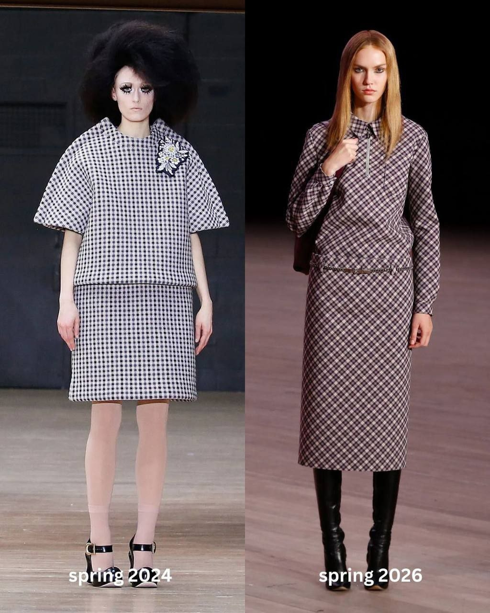 - возвращение клетки из нулевых Цитата: "В новом шоу Марк миксует кутюрный Yves Saint Laurent 1965 года с Perry Ellis 1993-го, лаконичность Helmut Lang смешивает с интеллектуальной модой Prada той же эпохи, а затем шлифует все оммажами собственному творчеству из 90-х и 10-х" Вот что вижу здесь я: