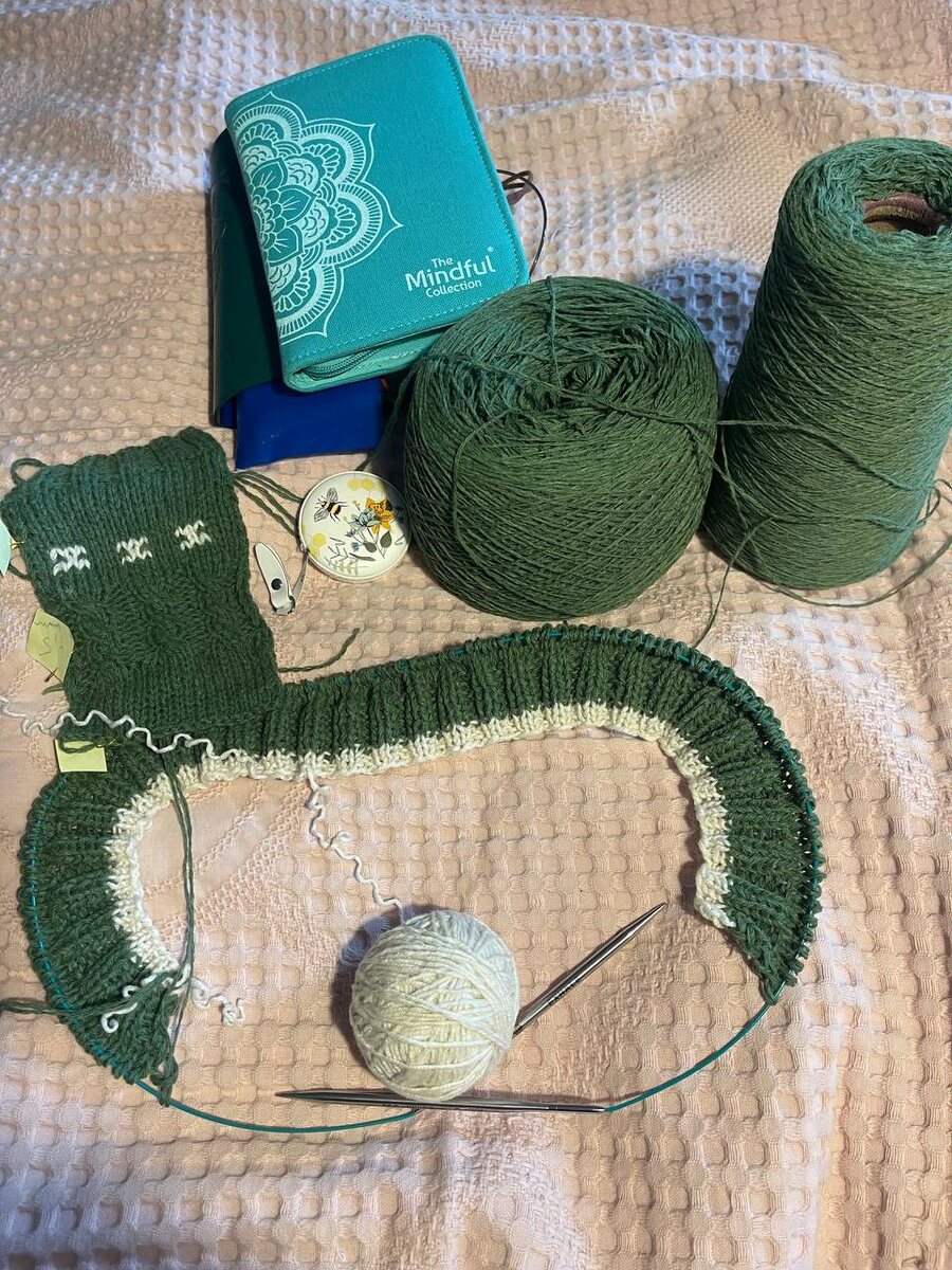 Следите за процессом, жаккард- это всегда увлекательно, требует максимального внимания .