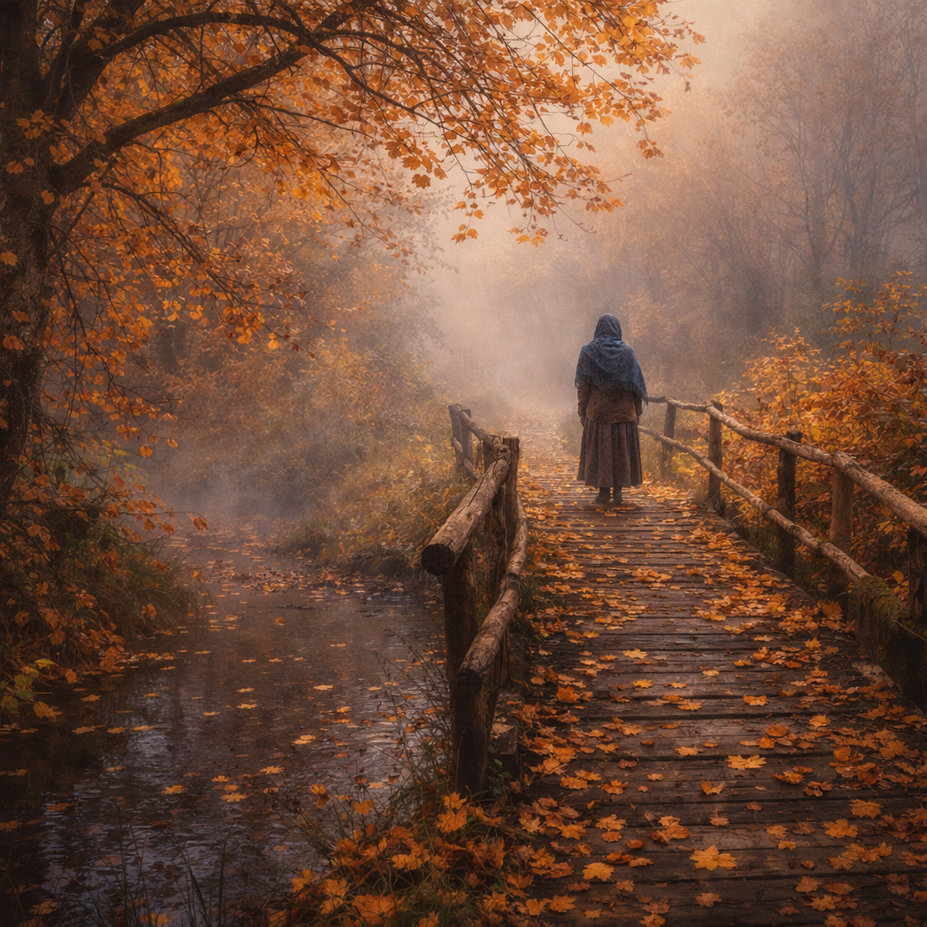 Он поцеловал её в лоб, ушёл. Анна посмотрела вслед: дорога блестела после дождя, река пела. Печка дома ждала, кошка мурлыкала на подоконнике.