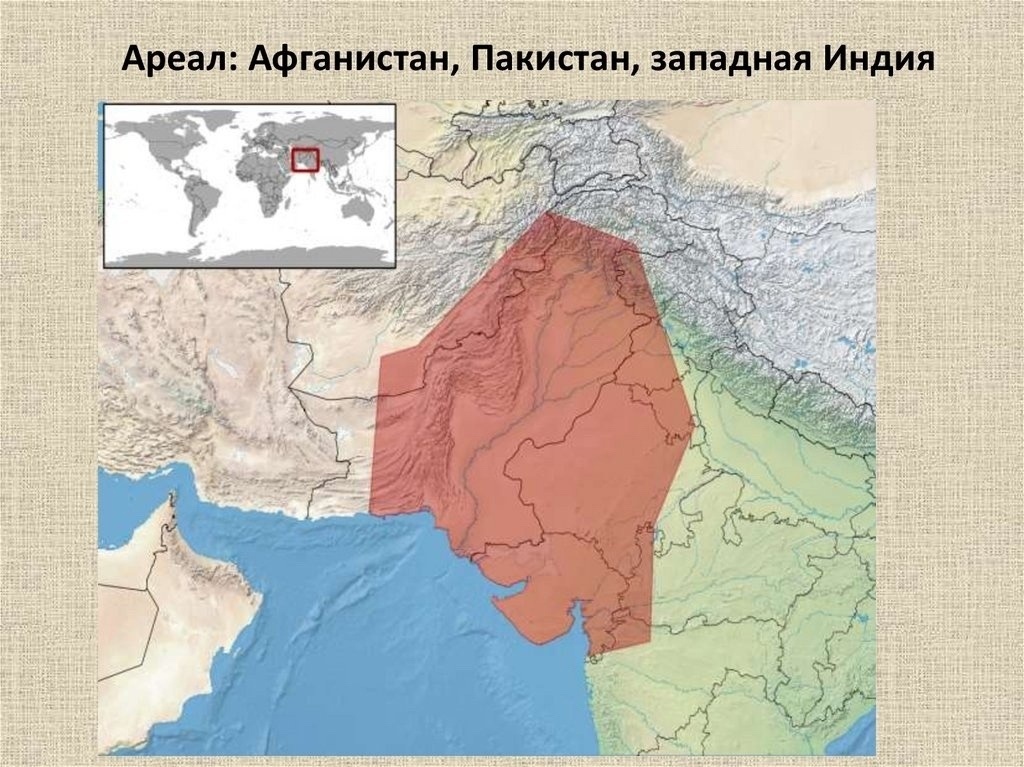 В природе этот вид обитает на северо-западе Индии, в Пакистане, на юго-востоке Афганистана, на востоке Ирана на каменистых склонах невысоких гор, почти лишённых растительности, в сухих и полусухих степях.