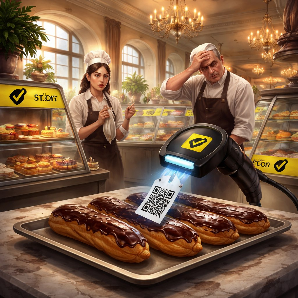 Процесс маркировки для штучного товара, сделанного вручную, — это адский труд. Это не просто наклеить наклейку. Это создание сложной цифровой сущности для каждого, абсолютно каждого пирожного.