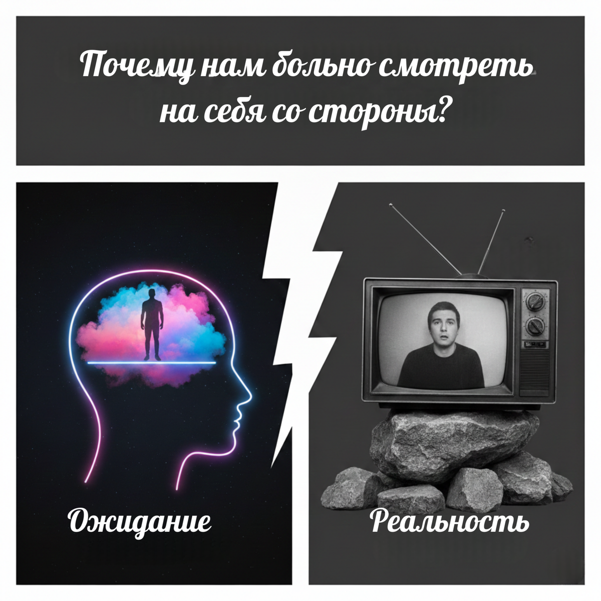 Вы когда-нибудь видели себя на случайном видео с семейного праздника или слышали свой голос в записи? "Боже, уберите это немедленно! Это не я!" - типичная реакция. Недавно в одной беседе промелькнула история о бизнес-идее: тайно снимать человека в течение нескольких дней (по договоренности), а потом вручить ему фильм о нем самом. Проект предсказуемо назвали провальным. Почему? Потому что мало кто готов встретиться с собой настоящим лицом к лицу. Это как "удар под дых". Почему образ в голове "разваливается" при встрече с видео? У каждого из нас есть модель себя - некий внутренний аватар. Мы привыкли думать, что это и есть реальность, но на самом деле наш мозг просто строит удобную схему. И вот почему видеозапись (особенно та, о которой мы не знали) эту схему разрушает: Это лечится? Хорошая новость: этот шок - признак того, что ваша модель мира обновляется. Психика получает новые входящие сигналы и начинает корректировать образ себя. Даже профессиональные актеры часто ненавидят смотреть