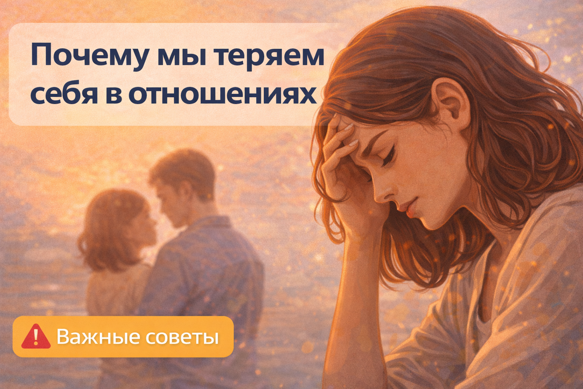 Отношения могут приносить не только радость и поддержку, но и стать источником внутренних конфликтов и потери самости. Часто в процессе близких отношений мы начинаем забывать о собственных желаниях, интересах и целях. Но почему это происходит? Как вернуть себе собственную идентичность и восстановить баланс между личной жизнью и отношениями? В этой статье мы разберемся, почему мы теряем себя в отношениях и как этого избежать. Один из главных факторов, который приводит к потере себя в отношениях, — это привычка ставить партнера или отношения в целом на первое место. Мы начинаем забывать о своих потребностях и увлечениях, стараясь угодить партнеру. Это может привести к тому, что мы начинаем чувствовать себя несчастными и забываем, что для того, чтобы быть счастливым с другим человеком, важно сначала быть счастливым с собой. Как это исправить: Научитесь устанавливать границы и выделять время для себя. Это может быть как несколько часов в неделю для любимого хобби, так и просто время для о