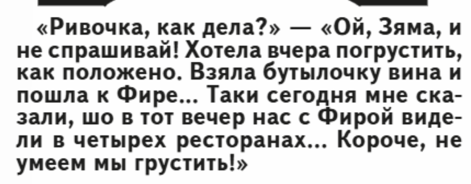 Всем привет, наше вам с кисточкой, шоб вы были здоровы! И снова на связи Зяма Шнобельсон, дедушка Зяма из Одессы. И он кое-что имеет нам сказать. Ну, то, что Зяма Шнобельсон - еврей, это не секрет, даже для самого Зямы Шнобельсона, дедушки Зямы. И то, что он, юморист из Одессы, - лицо, я бы даже сказал: витрина еврейского юмора - это также не для кого ни секрет. Сегодня дедушка Зяма - не главная для меня тема. Сегодня мне хочется как-то копнуть поглубже. Вот почему русский человек (да любой национальности человек) так любит и я бы даже сказал по-еврейски - ценит еврейский юмор? И дело тут не в количестве евреев, проживающих в России, ведь их много живёт по всему миру. Секрет кроется в самой сути этого (еврейского) юмора. Во-первых, еврейский юмор – это умный юмор. Он заставляет (частенько) задуматься, а не просто рассмешить. В нём часто скрывается глубокий смысл, и делает такое доброе дело не только игра слов, но и тонкая ирония. Во-вторых, он (еврейский юмор) остроумен. Еврейс