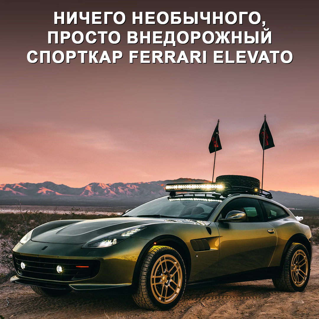 Это Ferrari Elevato — масштабная переделка GTC4 Lusso от компании GlasWerks DMV. Для превращения спорткара во внедорожник пришлось переработать или заменить около 30% всех узлов и компонентов. Самые глобальные изменения затронули подвеску. Здесь она абсолютно новая с алюминиевыми рычагами и стабилизаторами, усиленными приводами и амортизаторами. Клиренс вырос до 230 мм. Штатный 6,3-литровый V12 тоже прокачали, мощность выросла с 690 л.с. (760 Нм) до 758 л.с. (788 Нм). Он работает в паре с 7-ступенчатым роботом. Привод полный. Снаружи появился экспедиционный багажник с люстрой, новая решётка и светотехника. Без учёта стоимости самого автомобиля на все доработки потратили около $175 000. #дромтачкадня #автомобиль #машина #спорткар #внедорожник #тюнинг #ferrari