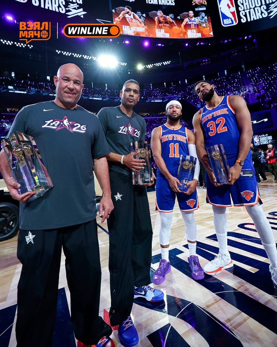 Сегодня команда «Никс» одержала победу в конкурсе Shooting Stars. Её представляли Джейлен Брансон, Карл-Энтони Таунс и легенда франшизы Аллан Хьюстон.