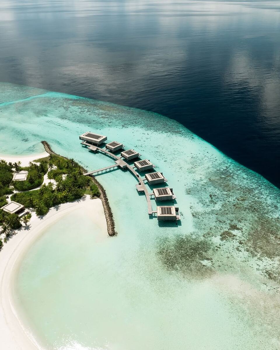И снова с вами Сергей с обзором отеля Patina 🏝️ Трансфер Скоростная лодка из Мале — 45 минут. Встречают у выхода из аэропорта, сопровождают до пирса. В лодке — прохладные напитки, фрукты, закуски. Первое впечатление: здесь ценят детали. Но будьте готовы — если рейс задержится, отель строго соблюдает график выселения. Лучше заранее согласовать все нюансы с менеджером. 🏡 Размещение Виллы — произведение архитектора Марсио Когана. Не традиционные бунгало, а современные пространства, вписанные в природу. Продумано всё: от blackout-штор до расположения розеток. Уборка дважды в день, мини-бар пополняется регулярно. Совет от туристов: берите виллу на стороне заката — там ветерок спасает от жары, а вид на океан завораживает. Если важен вход в воду — выбирайте лагунную сторону или водную виллу. У пляжных вилл дно часто каменистое, без специальной обуви не обойтись. 🌊 Пляж и риф Остров большой, зелёный, с двумя «лицами»: бушующий океан с одной стороны и тихая лагуна — с другой. Для купания
