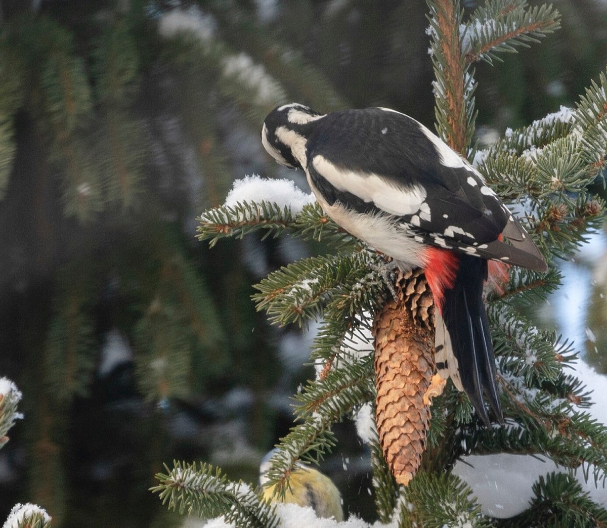 Дятлы встречаются очень часто в Карелии и Ленобласти. Птицы неутомимо трудятся с раннего утра и до вечера. Они перебирают шишки, сильными ударами клюва отрывают ее и несут в свои «кузницы». Шишку птицы помещают в щель, как в тиски. Затем точными и сильными ударами дятел отгибает чешуйки, постепенно продвигаясь к основанию шишки. Обработка занимает от трех до восьми минут. С еловой шишкой дятлу приходится возиться дольше, нередко до 15 минут. Таких «кузниц» у одного дятла бывает несколько десятков. Одни используются редко, под ними к весне лежат всего несколько шишек. А другие превращаются в настоящие «производственные цеха», отмечает исследователь В. М. Гудков. В результате под деревьями скапливаются груды переработанных шишек. Белки, лесные полевки и клесты тоже подъедают шишки, добывая из них полезные вещества и витамины.