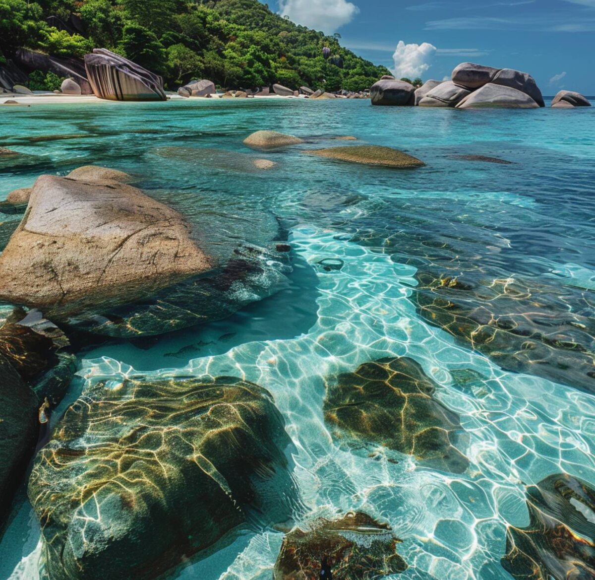 Сейчас Симиланы состоят из 11 островов. Изначально их было девять (само слово «симилан» означает «девять»), а в 1998 году к ним присоединили ещё два соседних островка. Для туристов открыты лишь некоторые. Первый, который мы посетили, известен своей смотровой площадкой и знаменитой скалой «Парус». Поднимаешься наверх — и перед тобой бесконечная лазурь, белоснежные бухты, камни причудливых форм… Красиво. Очень. Потом отправились к другим островам — снорклить с катера. Тут уже подтянулись такие же путешественники, как и мы, и поверхность воды украсилась десятками ярко-оранжевых жилетов 😄 Интересно наблюдать: многие индийцы и китайцы плавают неуверенно и даже у берега, по колено в воде, стоят в спасательных жилетах. После обеда просто валялись на пляже, купались, катались на качелях. Вода — потрясающая. Прозрачная, тёплая, бирюзовая. И знаете, она напомнила нам Мальдивы… Но не те, что в Индийском океане. А наши — крымские Мальдивы: косу Беляус, Южная коса, Тарханкут, Оленевка — наше лю