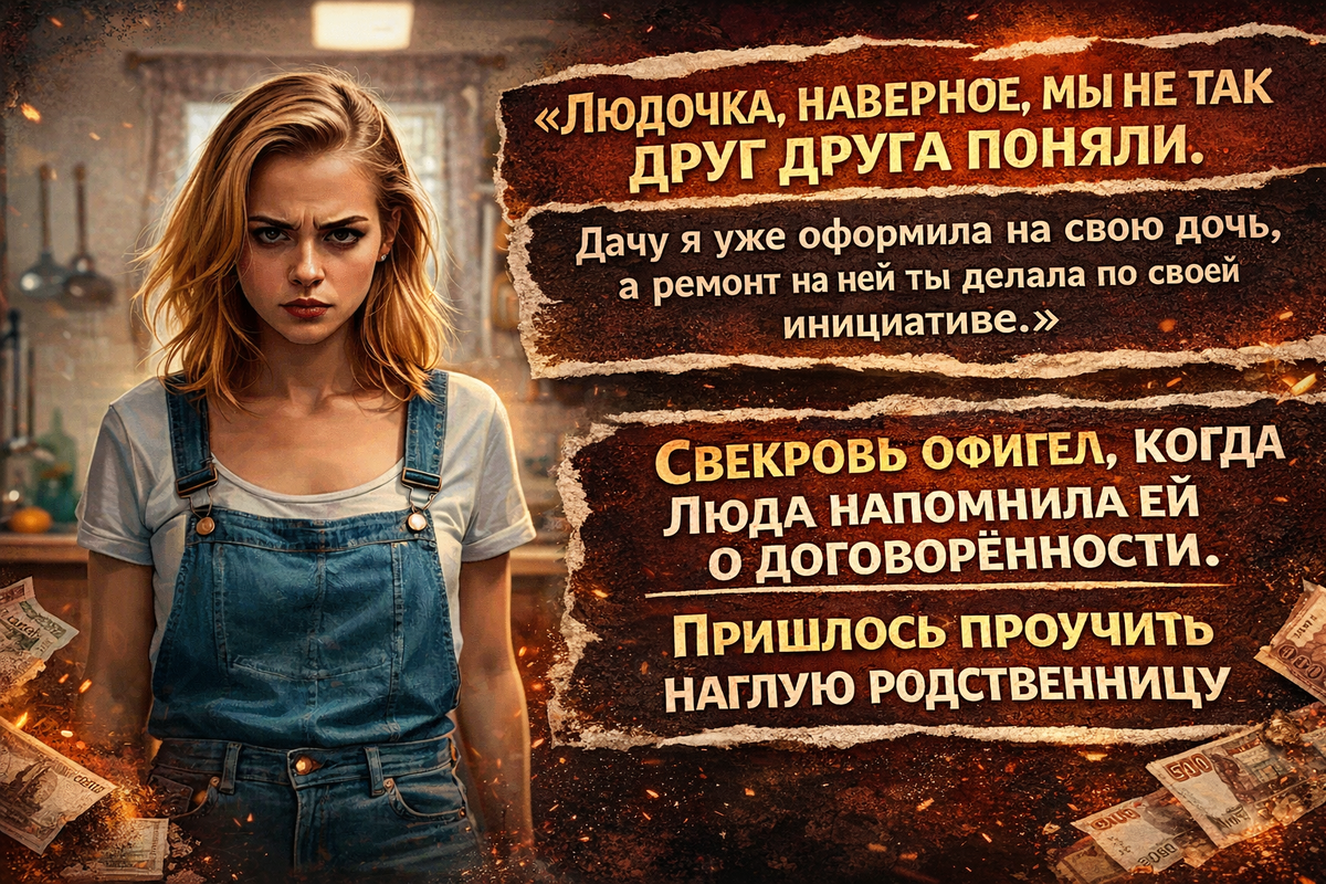 — Людочка, какие договоренности? Мы не так друг друга поняли. Ты же по своей инициативе начала ремонтировать. А дачу я уже оформила на дочь, — спокойно заявила Раиса Алексеевна.