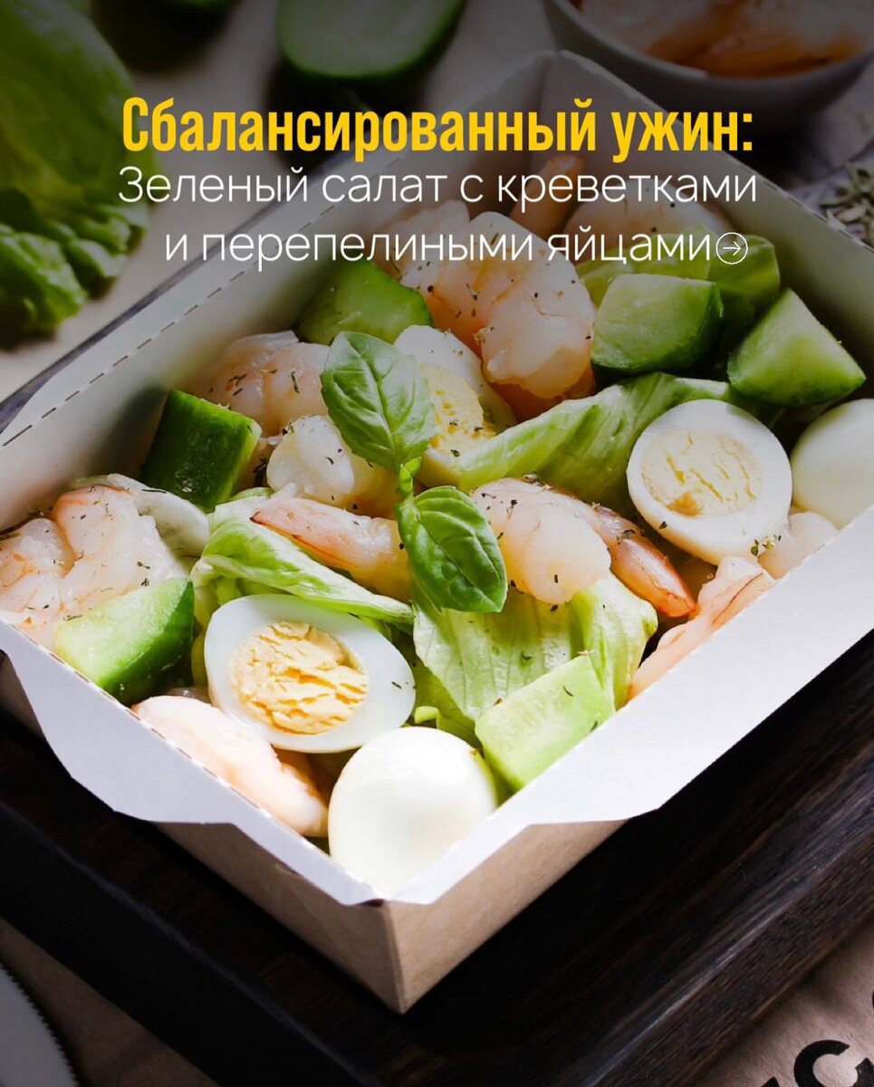 : 🥗 Зелёный салат с креветками и перепелиными яйцами Белки: 15,10; Жиры: 7,40; Углеводы: 1,50 Всего: 131 калория 🤩 Лёгкий, свежий и при этом хорошо насыщает за счёт белка. Отличный вариант для ужина, когда хочется поесть вкусно, сохранить баланс и не чувствовать тяжесть после еды. 📞Наш номер телефона: +7 (499) 499-86-99 💻 Наш сайт