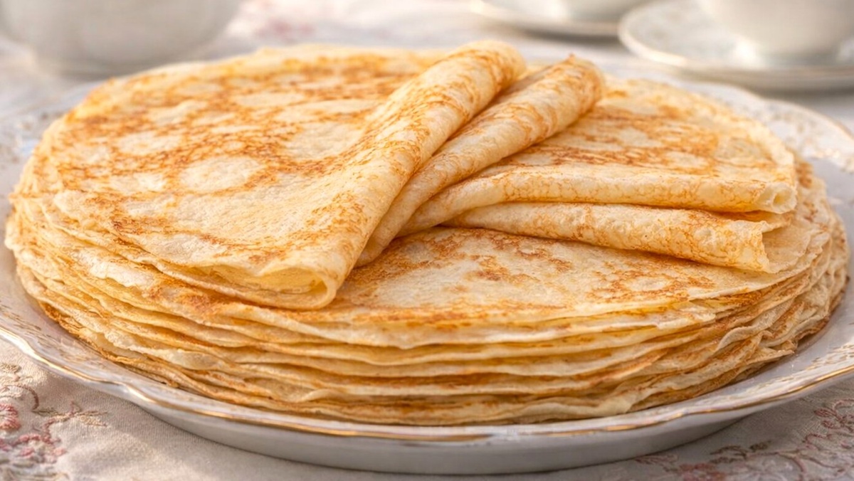 Пропорции простые, тесто получается правильной консистенции, блины выходят тонкие, мягкие и эластичные. Их удобно есть просто так, со сметаной или вареньем, и они отлично подходят для любой начинки — не ломаются и не трескаются. Я часто делаю тесто на смеси молока и воды. Так блины получаются тоньше и нежнее, чем на одном молоке, и при этом не рвутся. Молоко — 500 мл