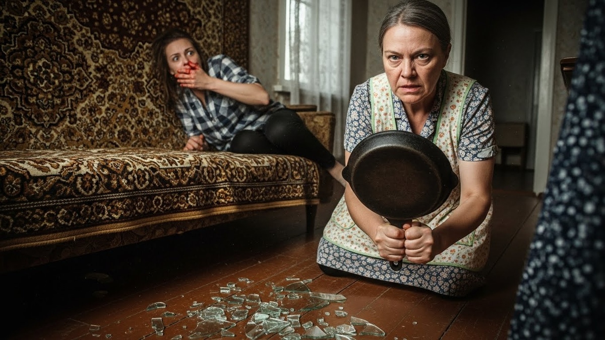 Стекло оконной рамы брызнуло во все стороны, осыпая старый паркет сверкающими, как ледяная крошка, осколками. В эту же секунду тяжёлая рука свекрови рванула Марину вниз, прижимая к пыльному ковру за массивным советским диваном. Где-то в коридоре грохнул выстрел, а затем послышались тяжёлые, уверенные шаги. Марина зажала рот ладонью, чувствуя вкус собственной крови на разбитой губе, и с ужасом посмотрела на Галину Петровну. Та, кого она привыкла считать своим главным врагом, сейчас сжимала в побелевших пальцах чугунную сковороду, а в её глазах, обычно полных ядовитого презрения, плескалась звериная решимость защищать.