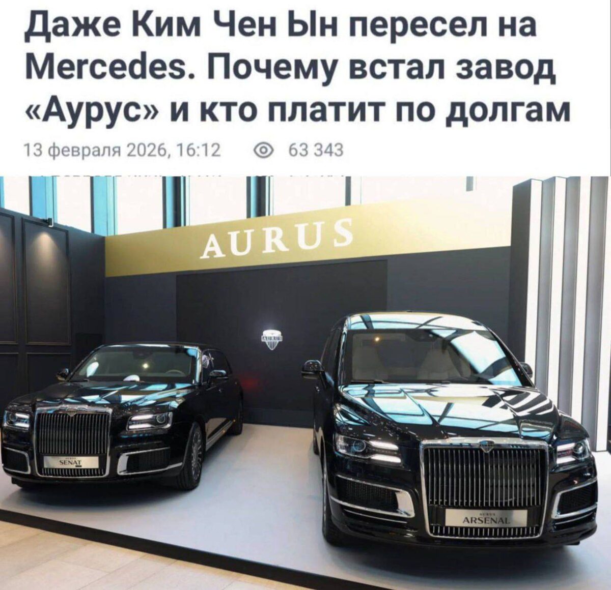 Официально сообщают об инвентаризации. Ким Чен Ын, прокатившись на подаренном Aurus, пересел обратно на Mercedes-Maybach Чиновники уже закупились, обычные люди не будут тратить по 50 миллионов за машину, а бизнесмены и олигархи как и раньше предпочитают авто других марок Компания производитель уже накопила долгов на сумму свыше €80 млн 👉🏻Новости №1 в Ростове 💌Прислать новость/фото Ростов Папа теперь в Ⓜ️🅰️❌