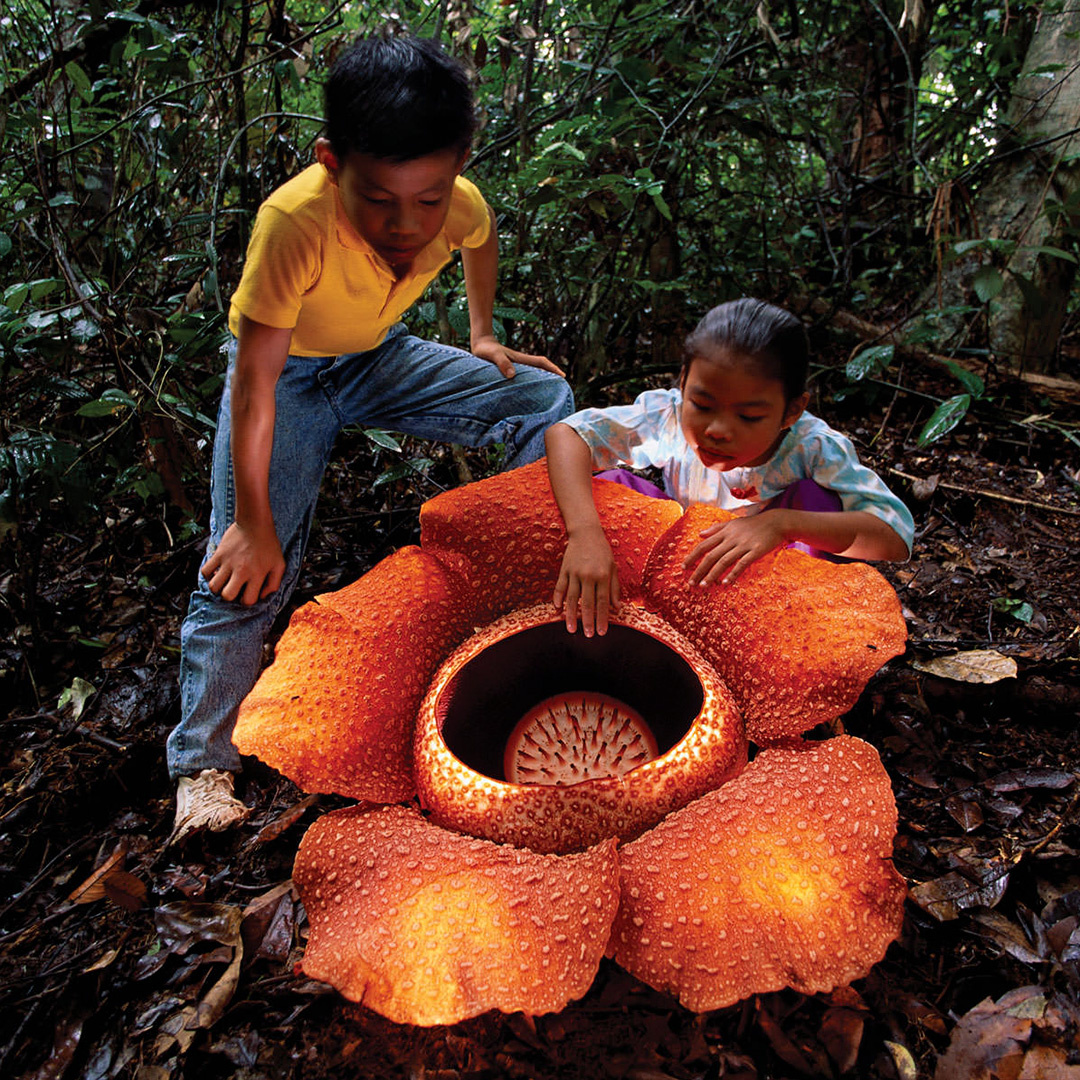 Привет, мои дорогие любители необычной земной природы. Сегодня отправляемся за самым большим цветком планеты — в индонезийские джунгли, под тяжёлый полог влажных реликтовых лесов, где пахнет листвой, сыростью… и иногда совсем не листвой. Представьте себе: вы идёте по тропе и вдруг видите на земле багровый круг размером с колесо крупного внедорожника. Ни стебля, ни листьев, ни намёка на куст. Просто цветок, будто его принёс из своего мира великан и обронил в джунглях. Это раффлезия Арнольда (Rafflesia arnoldii) — рекордсмен среди одиночных цветков. Диаметр превышает один метр, масса доходит до десяти килограммов. Раффлезии — род небольшой, около тридцати видов. Обитают они в тропических лесах Индонезии, Малайзии, Таиланда и на Филиппинах. Все виды паразитируют на лианах рода Tetrastigma, развиваясь внутри их тканей и почти полностью завися от хозяина. Цветок раффлезии — мясистый, багрово-красный, покрытый светлыми пятнами. Пять толстых лепестков образуют глубокую чашу с массивным центра