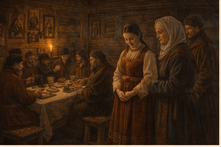 Она могла смеяться.Но тихо. Она могла радоваться. Но не на глазах у посторонних. В XVII веке женская сдержанность считалась не просто правилом — она считалась гарантией чести. И любое нарушение этой меры могло обернуться бедой. «Жене подобает быть тихой» В «Домострое» — сборнике наставлений, широко известном в русском обществе XVI–XVII веков — говорится: «Жена да будет кротка и молчалива, и мужа своего да боится». Это не означало постоянный страх. Речь шла о порядке. Женщина не должна была повышать голос.Не должна была вести себя вызывающе. Не должна была становиться центром внимания вне дома. Публичность считалась опасной. Когда смех становился поводом для подозрения В судебных делах XVII века встречаются формулировки, где поведение женщины описывается как «безчинное», «непристойное», «весёлое не по чину». Известны случаи, когда чрезмерная открытость трактовалась как признак распущенности. Если женщина громко смеялась в присутствии мужчин или вела себя свободно, это могло вызвать пере