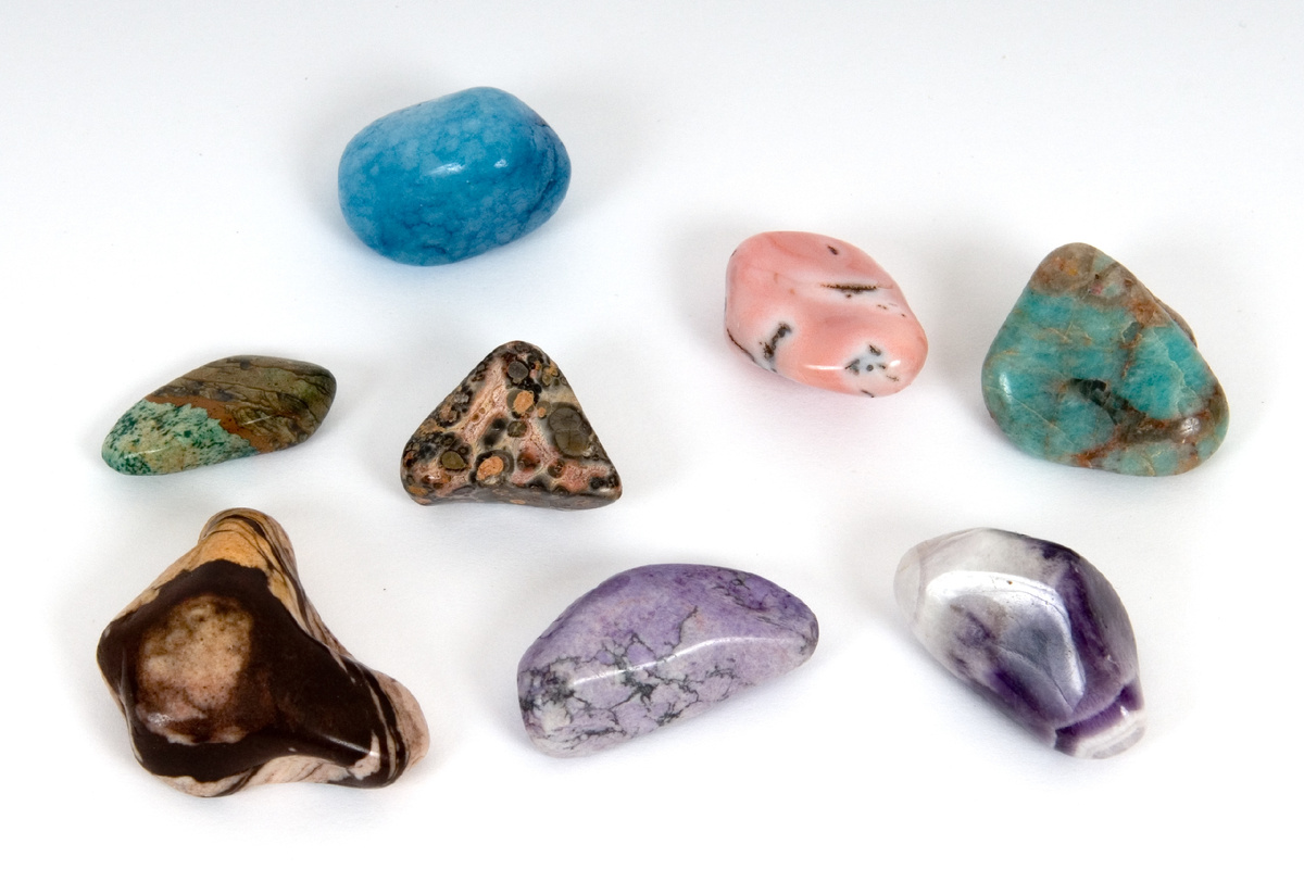 Рассматриваю набор галтованных камней, которые мне когда-то подарили из американского музея естественных наук. Музей продавал наборы, друзья купили и привезли мне в подарок. Камни не подписаны. Наверное, на самой упаковке, коробочке, был перечень названий, но коробочка не сохранилась...