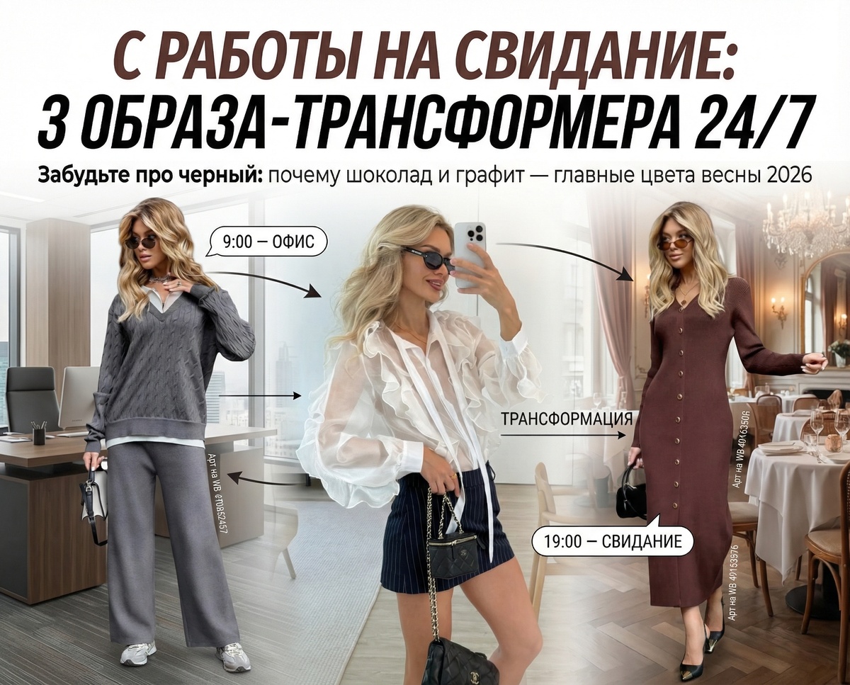 Черный цвет — это зона комфорта. Мы привыкли прятаться в него, когда не знаем, что надеть, или хотим выглядеть стройнее. Но весна — это время выхода из спячки. И если к ярким краскам вы пока не готовы, предлагаем идеальную альтернативу: палитру «тихой роскоши». В этом сезоне бал правят сложные, «вкусные» и интеллектуальные оттенки. Они работают так же, как черный (стройнят и ко всему подходят), но несут совершенно другой посыл. Они говорят не о защите, а о наслаждении жизнью. Мы в VERH выбрали три вещи в главных цветах этой весны, которые станут вашей персональной цветотерапией. Коричневый долгое время был недооценен, но сейчас это «новый черный». Глубокий оттенок горького шоколада — это цвет стабильности, доверия и тепла. Наше платье миди в шоколадном цвете работает на вас: Серый — это цвет не «мышки», а кардинала. Глубокий графитовый оттенок ассоциируется с интеллектом, профессионализмом и внутренней силой. Наш серый брючный костюм — униформа современной женщины: Если шоколад и графи