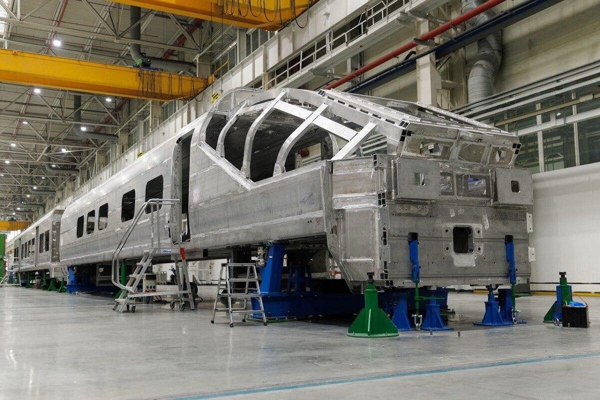 На заводе «Уральские локомотивы» закончена сварка кузовов головного моторного и второго немоторного вагонов первого состава поезда «Белый кречет» для будущей высокоскоростной магистрали (ВСМ). Ведётся сварка седьмого и восьмого вагонов. В производстве элементов кузова использован экструдированный алюминиевый профиль. Он в три раза легче стали и позволяет снизить нагрузку состава на верхнее строение пути. Это важно, когда поезд движется на высокой скорости — до 400 км/ч. Поезд получит комплекс машинного зрения, средства дистанционного управления и устройства интервального регулирования. В стандартной 8-вагонной конфигурации «Белый кречет» рассчитан на перевозку 454 пассажиров. Но предусмотрен и сдвоенный вариант состава. Два первых вагона-локомотива и полностью первый состав должны быть переданы на тестовые испытания в 2027 году. Поезда «Белый кречет» должны выйти на линию ВСМ «Москва - Санкт-Петербург» в 2028 году. Всего до конца 2030 года по госконтракту «Уральские локомотивы» дол