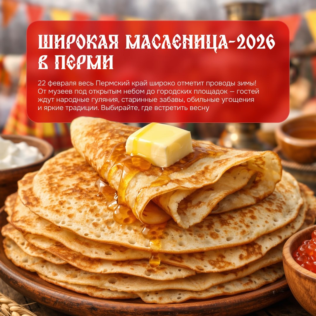 22 февраля провожаем зиму по-уральски — шумно, сытно и с размахом. В этом году гулять будем сразу на нескольких площадках: от музея под открытым небом до конных скачек. Держите подборку, чтобы не пропустить самое вкусное. 🐓 Где бы вы ни были — везде вас ждут: — горячие блины с начинками (обязательно), — ремесленные ярмарки и мастер-классы, — хороводы, столбы и прочие народные забавы, — и главное — торжественное сожжение чучела. ❤️ Подписаться | Предложить новость | Дать «буст» | Мы в MAX