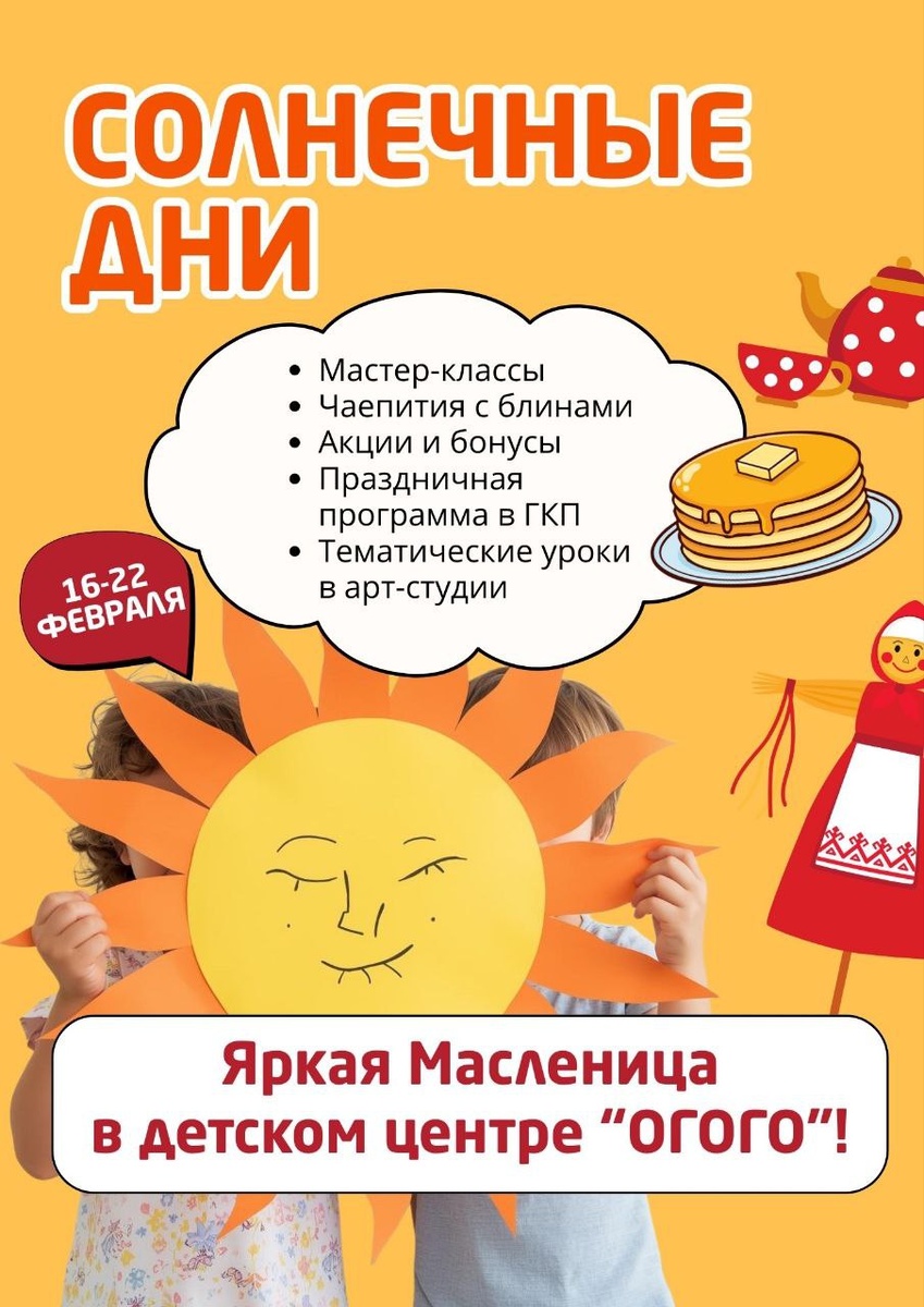 🥞 МАСЛЕНИЦА В «ОГОГО»! Праздничные события для детей от 2 до 10 лет в Дрожжино