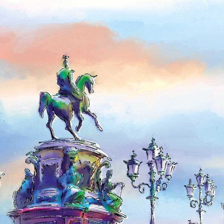 Начнем с того, что у нас был классический сюжет: величественный Исаакий, благородный памятник Николаю I, элегантная пара в исторических нарядах. Всё чинно, благородно… но как-то уж слишком спокойно. И тут пришла идея! 💡 А что, если добавить в картину щепотку хаоса или хулиганства? https://vk.ru/wall-123215634_7521