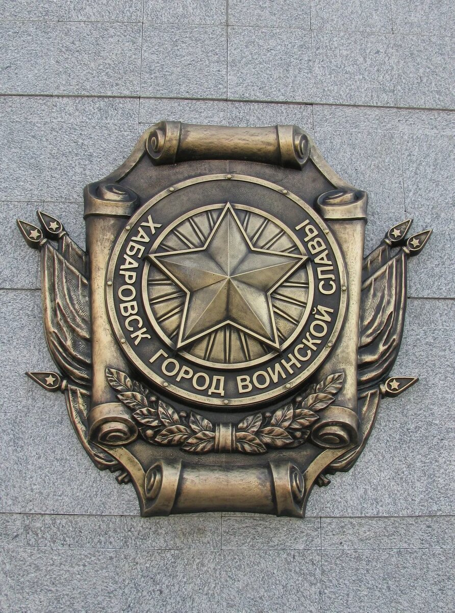 Здравствуйте, дорогие читатели! Форпост на восточных границах нашей страны - так часто называют Хабаровск. Немногие знают, что наш город является городом воинской славы. Сегодня, в преддверии Дня Защитника Отечества, я расскажу вам о военной истории Хабаровска. Почетное звание «Город воинской славы» было присвоено нашему городу 3 ноября 2012 года указом президента РФ Путиным В.В. Согласно Указу, звание было присвоено Хабаровску «За мужество, стойкость и массовый героизм, проявленные защитниками города в борьбе за свободу и независимость Отечества». В Хабаровске есть площадь воинской славы, где установлена памятная стела. Двуглавый орел на вершине стелы был отлит в Санкт-Петербурге. На стеле укреплен бронзовый картуш с текстом Указа Президента РФ, на тыльной стороне стелы – картуш с гербом Хабаровска. На боковых сторонах стелы ниже картушей укреплено четыре бронзовых барельефа. Изображения на барельефах иллюстрируют ратный подвиг и трудовой героизм хабаровчан в разнее годы и
