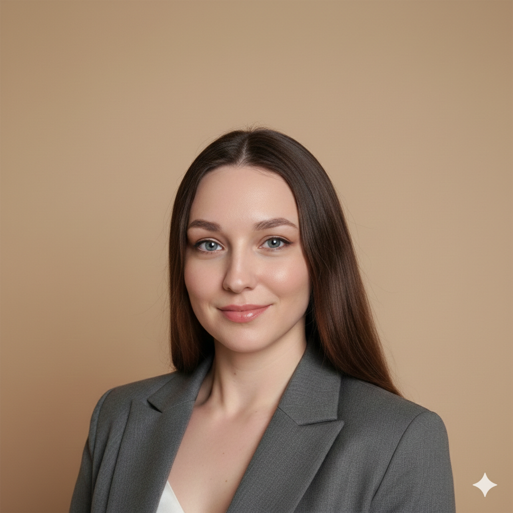 Close-up portrait of a professional woman/man, minimalist studio background in soft beige tones, cinematic lighting, high-end photography, wearing an elegant blazer, sharp focus, 8k.