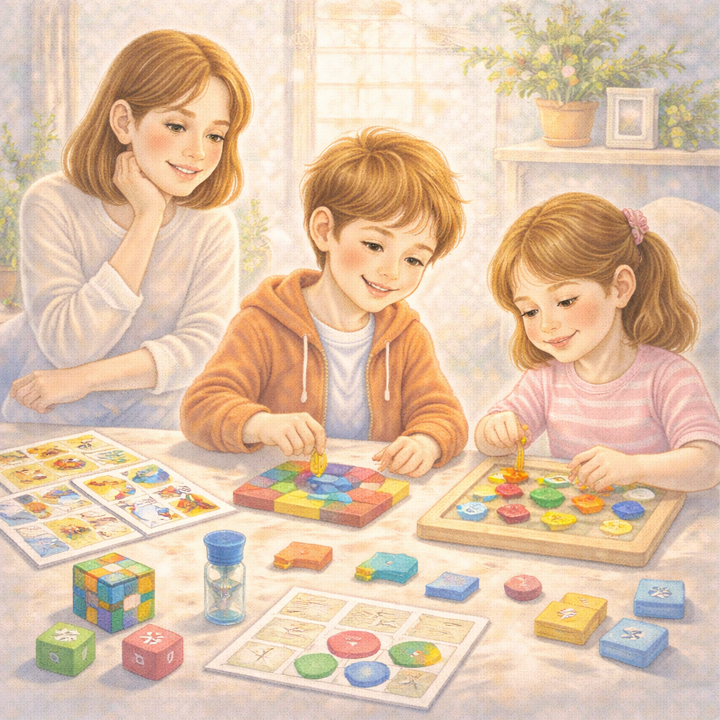 Для развития логики у детей 5–7 лет подойдут короткие игры, которые тренируют аналитическое мышление, умение находить закономерности и решать простые задачи. Вот несколько вариантов, которые можно провести за 10 минут: Суть игры: покажите ребёнку две похожие картинки, на которых есть несколько мелких различий (например, цвет предмета, отсутствие какого-то элемента, изменение положения объекта). Задача — найти все отличия. Как играть: можно использовать распечатанные изображения или онлайн-версии игры. Для детей 5–7 лет достаточно 5–7 отличий. Видео с примером игры: Видео: Найди отличия | Игра для детей от 6 лет Суть игры: предложите ребёнку набор из трёх или четырёх предметов (изображений, слов), среди которых один не подходит по какому-то признаку. Задача — определить лишний объект и объяснить почему. Примеры: Суть игры: нарисуйте квадрат, разделённый на 9 клеток. В восьми клетках изобразите предметы или фигуры, связанные между собой по определённому принципу (например, в верхнем ря
