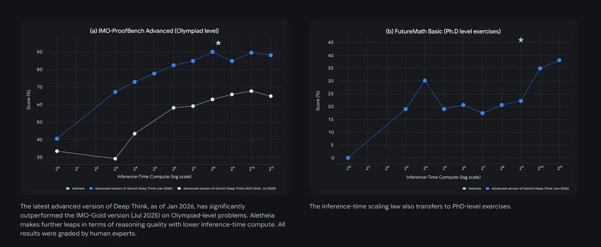 #Google DeepMind представил Aletheia, ИИ-агент, специализирующийся на математике, который набрал 91,9% баллов в IMO-ProofBench Advanced, одном из самых сложных общедоступных бенчмарков для доказательств в стиле олимпиад. #Aletheia работает на Gemini Deep Think и использует цикл генерации доказательств, их проверки и последующего исправления ошибок. DeepMind заявляет, что она превосходит даже новейшие конфигурации #Gemini Deep Think Advanced, при этом используя меньше вычислительных ресурсов. Помимо бенчмарков, агент официально решил четыре задачи из списка Эрдёша, причем одна из них ранее не была решена в литературе. Он также написал полную математическую статью с правильными результатами и помог исследователям в реальной академической работе. @PrimeSci