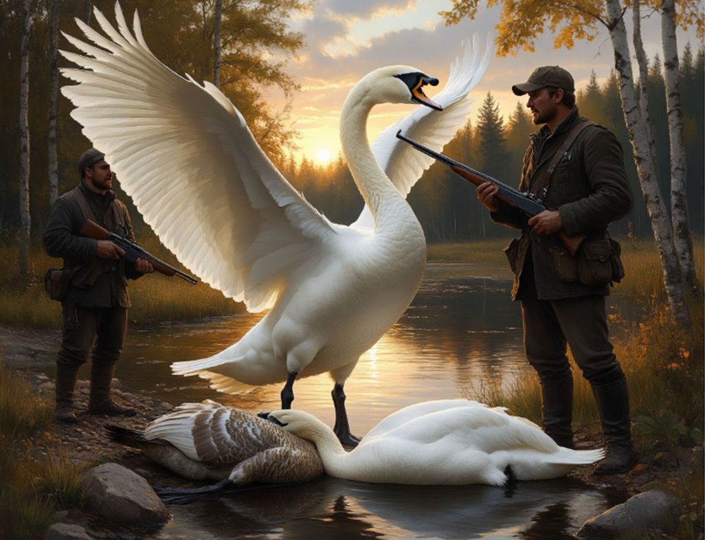 Я разговаривал со старыми охотниками, с егерями, с деревенскими жителями, которые всю жизнь прожили рядом с лесами и озёрами. И почти каждый из них рассказывал похожую историю. Не обязательно про лебедей. Про журавлей, которые возвращались на место гиб...ли пары годами. Про лосиху, которая приходила к тому месту, где уб...ли её лосёнка, каждую весну, пока не состарилась и не ум...рла. Про собак, которые годами ждали хозяев на автобусных остановках.