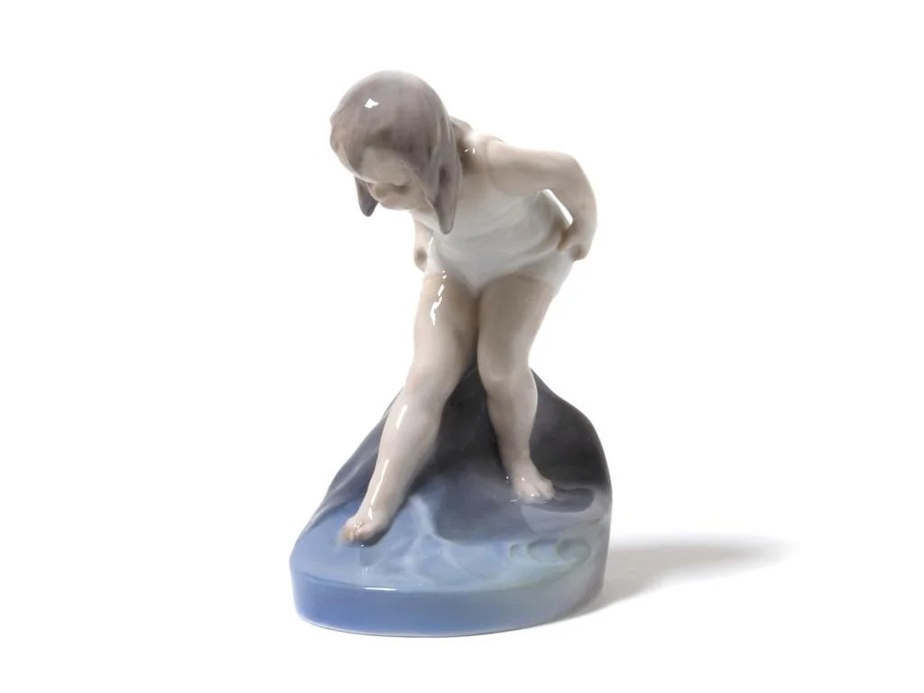 Дания, г. Копенгаген, Royal Copenhagen Royal Copenhagen, 1945 Фарфоровая фигура (статуэтка) "Купающаяся девочка".Ручная подглазурная роспись.Дания, г. Копенгаген, Royal Copenhagen, 1945 год.Скульптор: Chr. Thomsen (годы жизни 1860 - 1921 гг, годы работы на фабрике: 1898-1920 гг).Клеймо производителя.Номер модели: 1229.Инициалы художника, расписавшего статуэтку: GTX .Размер: 13 см.Статуэтка первого сорта.Без сколов, повреждений и без реставраций.Porcelain figurine "Girl bathing".Hand-painted underglaze.Denmark, Copenhagen, Royal Copenhagen, year 1945.Sculptor: Chr. Thomsen (years of life: 1860-1921, worked at the factory since 1898 to 1920).Factory mark.Model: 1229.The initials of the artist painted this figurine: GTX .Height: 13 cm.Figurine of the first sort.Without chips, damage and restorations.RC_1229 Люди Дети Стоимость лота: 15 000 ₽ Подробнее на нашем сайте