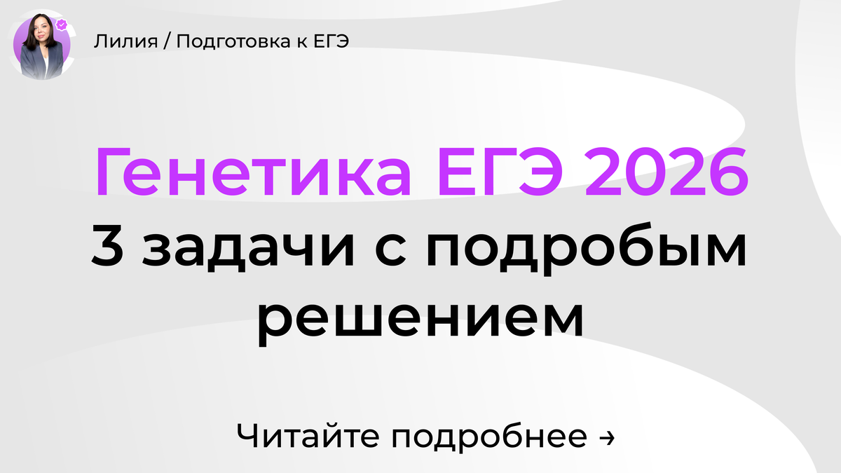 Дарю файлик "5 главных ошибок ЕГЭ 2026" за прохождение анкеты (1 минута): https://forms.gle/Aj6tjZhU84zurr7q8 Чтобы не «угадывать», используйте одинаковую схему: Такой формат помогает не путать клетки решётки Пеннета с количеством генотипов и не терять половину баллов на «мелочах». Условие (типовое): два признака, гены наследуются независимо, доминирование полное. Решение: Почему так получается: при независимом наследовании расщепление по каждой паре генов идёт независимо, и для двух генов в F2 получается классический радикал 9:3:3:1. Это задание отлично ловит тех, кто автоматически думает «два гена → значит 8 вариантов». На деле всё решает