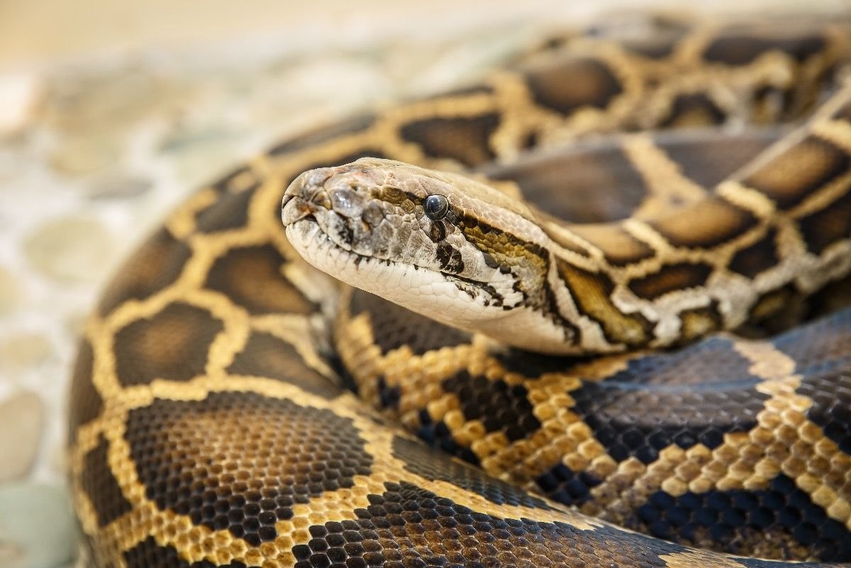 🐍 Тигровый питон — крупная неядовитая змея длиной обычно 3–5 м, отдельные особи могут превышать 7–8 м; тело массивное, с треугольной головой. 🎨 Окраска варьирует от желтовато‑коричневой до оливковой, по фону разбросаны крупные тёмно‑коричневые пятна сложной формы, образующие характерный «тигровый» узор. 🌏 Обитает в лесах, саваннах и возле водоёмов Южной и Юго‑Восточной Азии, отлично плавает и лазает по деревьям. 🍗 Охотится из засады на млекопитающих и птиц: хватает добычу зубами и душит кольцами тела, после чего заглатывает целиком и может не есть недели или месяцы. Забавные и милые животные👍 #животные #змея #рептилия