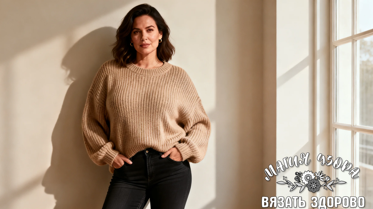 изучала материалы о вязаном оверсайзе и обнаружила шокирующее: 80% мастериц считают, что объёмные свитера полнят и скрывают фигуру. Решила разобрать с вами подробно этот вопрос.