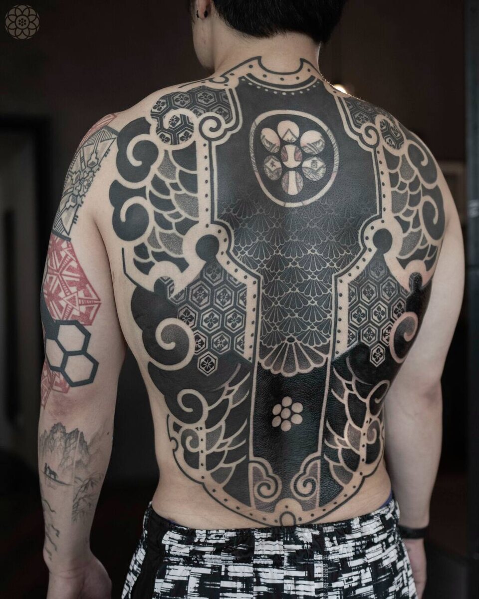 Его татуировки – это орнаменты и узоры, будто вырезанные на доспехах, и каждое из них уникально для владельца.