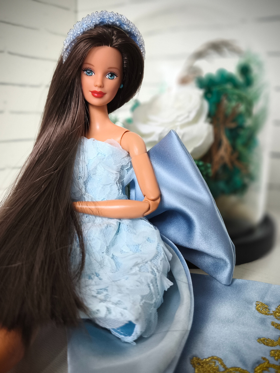 Я не могу понять только одного - куда делась ее челка. Выпуск абсолютно точно этот, рисовка, сережки - все совпадает. Перепрошита? Возможно, но цвет волос и длина совпадают с заводскими, и по качеству они не похожи на саран луксов, они очень мягкие, как у всех винтажек. Они ооочень похожи на родные. Не могу до конца поверить, что перепрошита, вот честно. Но челки нет. Пустых лунок тоже нет. Пока что секрет исчезновения челки остается маленькой тайной Эбби (так я назвала куколку).