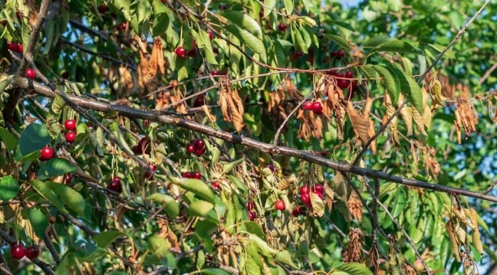 Знакомая картина: вроде бы черешня дружно распустилась, завязала ягоды, и вдруг — листья вянут, сохнут, сворачиваются лодочкой. Моя соседка чуть не плакала в прошлом году: три молодых деревца за неделю "сгорели". Оказалось, врага надо знать в лицо и действовать быстро. Рассказываю, кто виноват и что делать, пока дерево не погибло. Весеннее усыхание черешни — ситуация обидная вдвойне. Ты ждал, ухаживал, а дерево, уже набравшее цвет, вдруг начинает чахнуть. Чаще всего причина — не одна, а три разные напасти. И лекарство от каждой нужно своё. Давайте разберём главных подозреваемых. Самая частая причина весенней трагедии. Грибок, который просыпается именно в сырую погоду во время цветения . Как выглядит: Ветки выглядят так, будто их опалило огнём. Цветки буреют, засыхают, но не опадают. Потом сохнут листья и молодые побеги. Дерево стоит с обгоревшим видом, а на коре могут появиться серые подушечки . Что происходит: